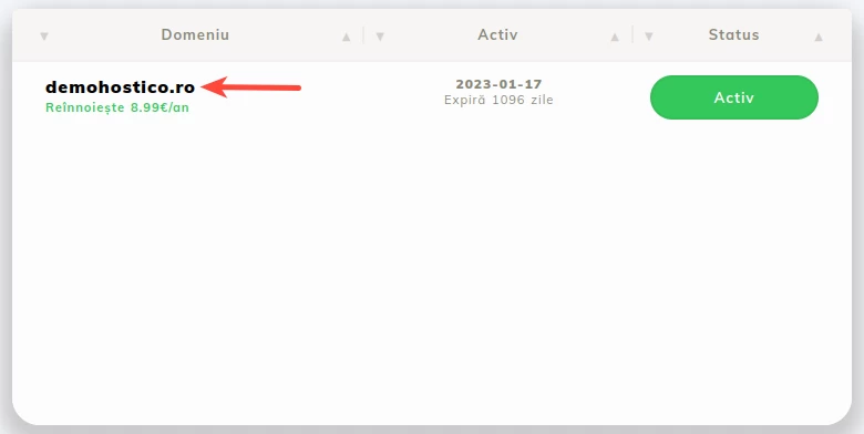 - Після увійти в обліковий запис клієнта Hostico, перейдіть до розділу Домени;