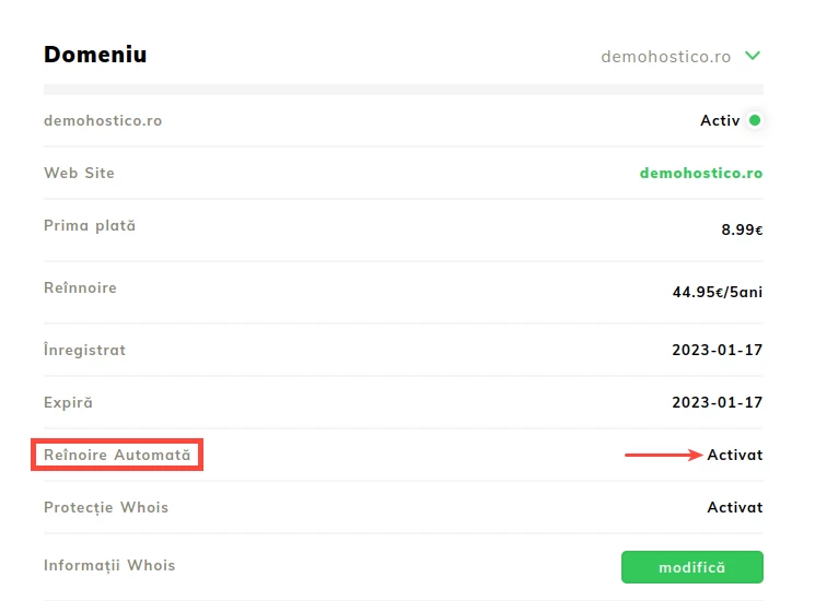 - Увага - з цією опцією, активованою в Hostico, не буде надсилатися жодних повідомлень про закінчення терміну дії домену. Її слід активувати лише для доменів, які більше не будуть використовуватися/для яких подовження більше не бажане.