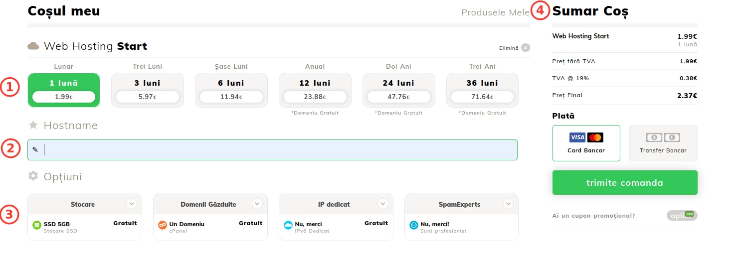 Навчіться оформляти замовлення на хостинг на Hostico, обираючи бажаний пакет, налаштовуючи параметри та користуючись безкоштовною реєстрацією домену.