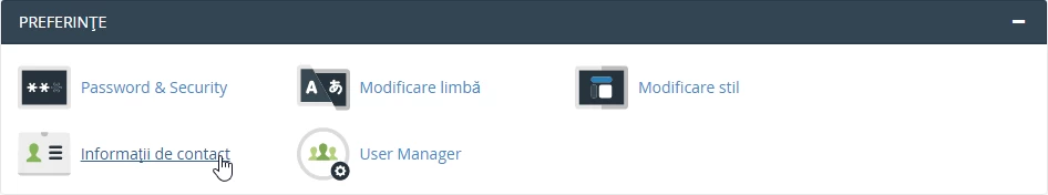 - Щоб активувати сповіщення в обліковому записі cPanel і змінити контактну інформацію, ми увійдемо в обліковий запис cPanel і перейдемо до розділу Переваги, а потім натиснемо на Контактна інформація.