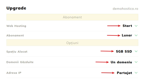 - Останній крок перед завершенням замовлення - це перевірка вартості апгрейду та вибір способу оплати. Після того, як буде впевнений, що вибраний пакет є бажаним, процес буде завершено, перейшовши до АПГРЕЙД.