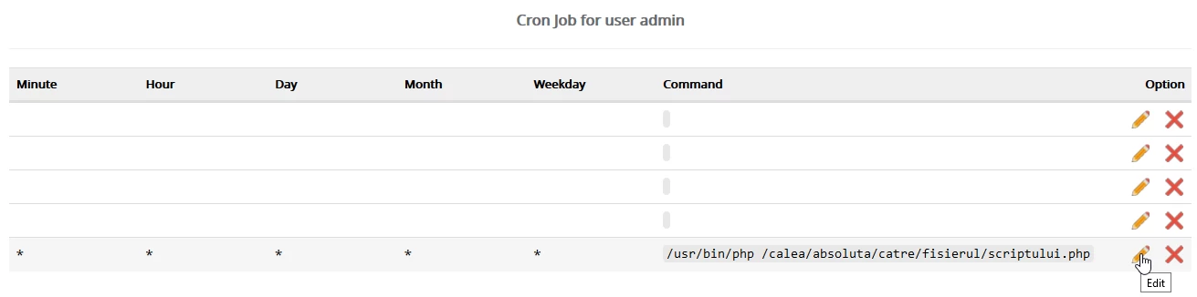 - Потім завдання cron можна переглянути або редагувати внизу сторінки в розділі Cron Job для користувача admin.